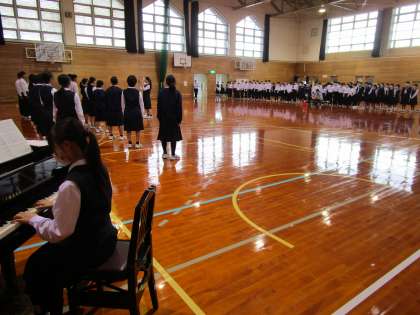 今日は、体育館で練習している3−1の合唱を聴きに、1−3と1−4が来ていました。先輩たちの素晴らしい合唱を聴いて刺激を受けている様子でした。