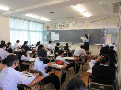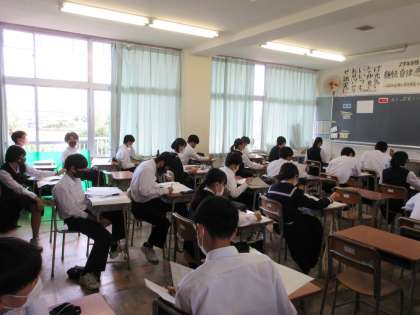 2年生のテスト後の授業の様子です。 写真上段 2−2 国語 写真中段 2−3 社会