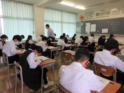 10月12日(水) 2年 中間考査2日目 公開日 2022/10/12 更新日 2022/10/12 2学年 2年生の中間テストに取り組んでいる様子です。 2限目、最後の教科は理科でした。 写真は、1組、2組、3組のテストの様子です。