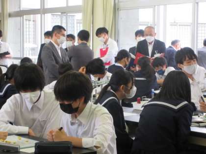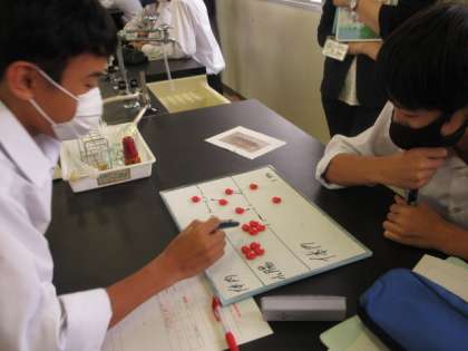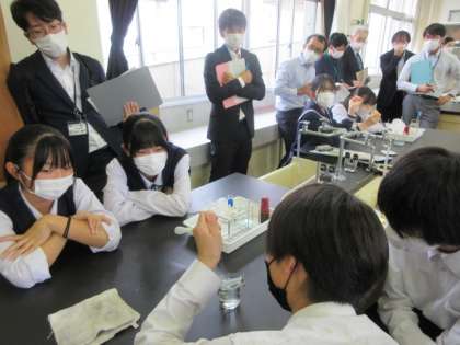 10月12日(水)富山県中学校教育課程研究大会 理科授業 公開日 2022/10/12 更新日 2022/10/12 news 実験結果をもとに、デンプンとブドウ糖を比較し、小腸の壁の通りやすさを考えました。活発に話し合い、自分たちの意見をまとめていました。 また、積極的に実験にも取り組みました!