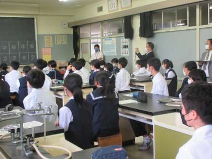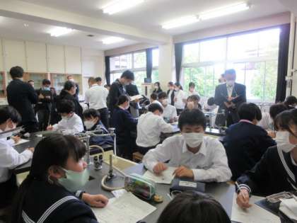10月12日(水)富山県中学校教育課程研究大会 理科授業 公開日 2022/10/12 更新日 2022/10/12 news 1−4は、物質の状態変化の授業を行いました。液体から気体へ変化するときの様子を画像で振り返り、次は液体から固体へ変化するときの様子から、それらをモデルで表す授業でした。 ロウが固まってへこんでいる様子から生徒達は活発に意見を交わし、モデルでどう表すか考えました。