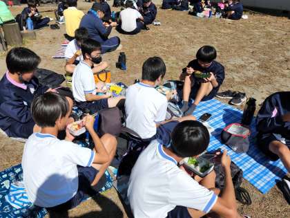 美味しそうに、お弁当を食べています!