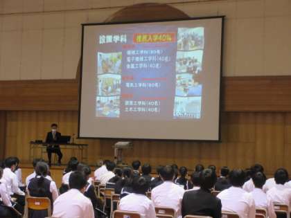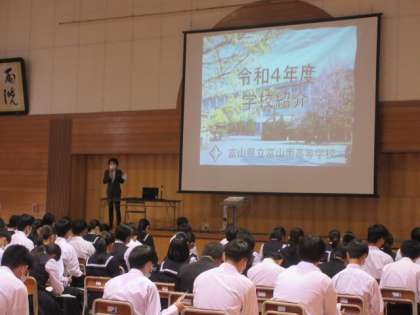 10月14日(金) 3年生 高等学校等説明会 公開日 2022/10/14 更新日 2022/10/14 3学年 午後は高等学校等説明会を行いました。7名の先生方に来ていただき、各校の特色や卒業後の進路先等について話をしていただきました。保護者の方にも参加していただき、将来の進路について考えるよいきっかけとなりました。