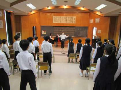 本日終学活後、1年生のみクラス合唱練習がありました。本番がいよいよ一週間後に迫り、改善点を全員で確認しながらポイントを絞って練習しています。