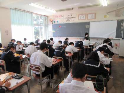 写真上段 1−3 英語 プリントにて総まとめ 写真下段 1−4 理科