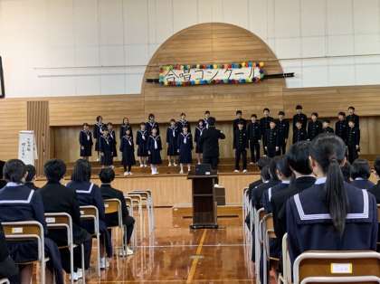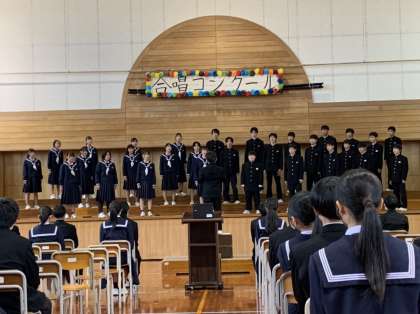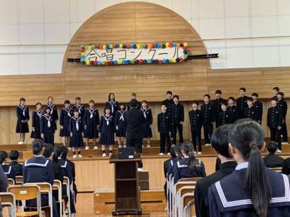2年生の合唱コンクールが行われました。さすが2年生です。きれいなハーモニーを聴かせてくれました。リハーサルよりもかなりまとまった歌声になりました!