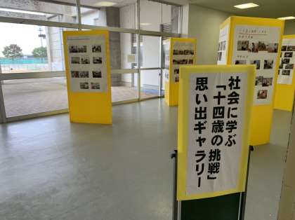 10月22日(土)2年生「社会に学ぶ『14歳の挑戦』」展示 公開日 2022/10/22 更新日 2022/10/22 news 体育館入口には、9月に行われた「社会に学ぶ『14歳の挑戦』」の写真を展示しました!