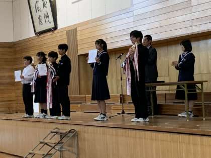 最後に鍋田校長から「今日は感動しました。みなさんの一生懸命さが感動をうみます。これからも活力あふれる藤ノ木中学校を一緒につくっていこう」と激励の話がありました。