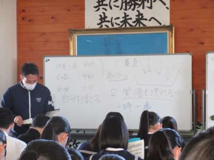 今回の学年集会は、今後の進路スケジュールと心構えについて学年主任が話をしました。