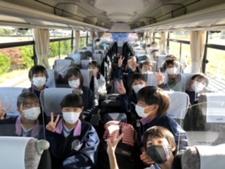 現在高岡に向け移動中です。朝早くに集合したので、少し眠い人もいるようです。