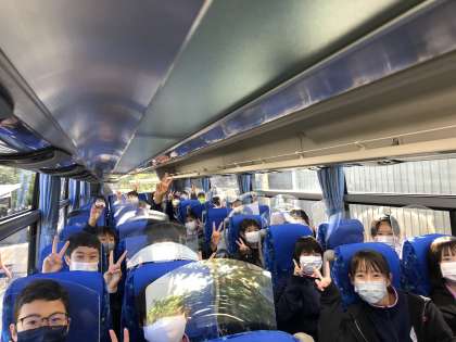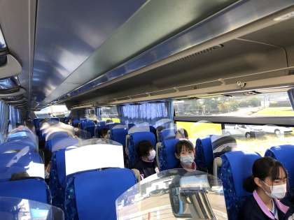 これから高岡校外学習に向かいます。4組のバス内の様子です。