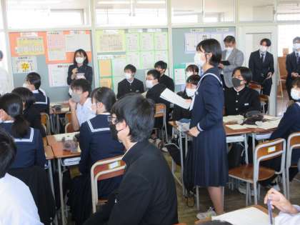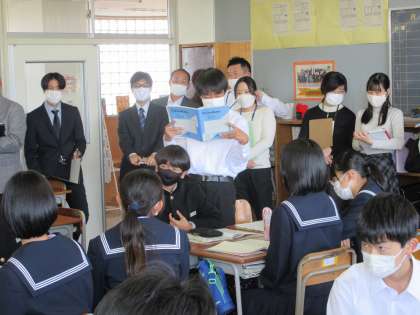 午後から2年3組だけが残って国語の授業を行ったのですが、生徒たちは積極的に発言するなど活き活きと授業に参加し、講師の萩中准教授から大変お褒めの言葉をいただきました。