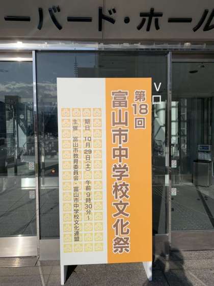 晴れ渡った今日、2年ぶりに富山市中学校文化祭が行われました。