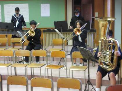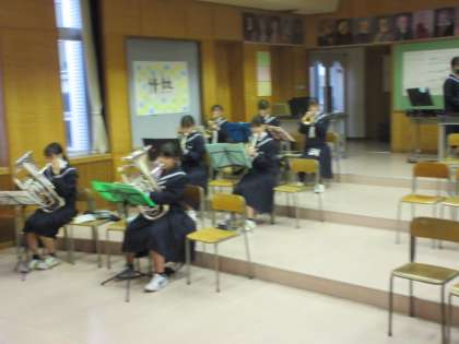 音楽室では、各パートに分かれ、練習に励んでいました。音を丁寧に響かせていました!