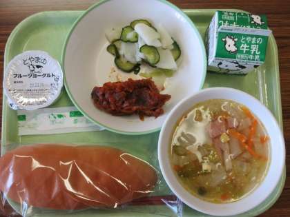 今日は「学校給食とやまの日」として、地場産の物を多く取り入れた献立でした。