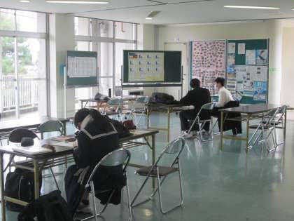 11月16日(水) 3年 進路懇談会 公開日 2022/11/16 更新日 2022/11/16 3学年 3学年は、本日より進路懇談会が始まりました。 写真は、待ち時間にコモンスペースで学習している3年生の姿です。 来週のテストに向けて、勉強を頑張っています。