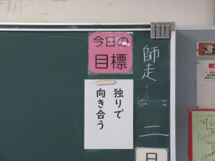 3年 教室掲示 公開日 2022/12/04 更新日 2022/12/04 3学年 3年生の教室には、毎日の「今日の目標」のところに「頑張るための一言」が掲示されています。 「独りで向き合う」 深いです。