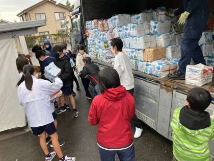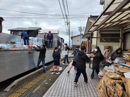 バケツリレーのように次から次へと手際よく新聞紙や古本をトラックに乗せました。