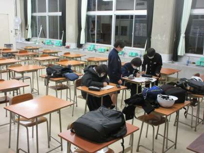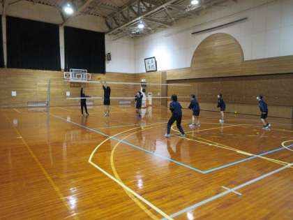 写真中段 野球部(体育館下ピロティでの練習風景)