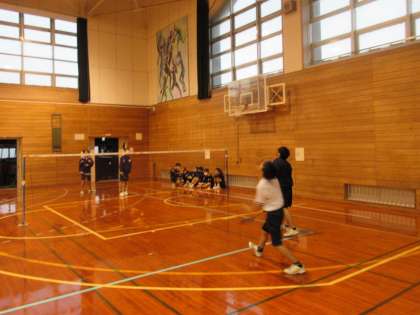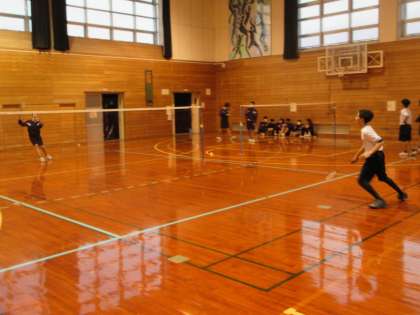 バドミントン部は軽快なフットワークでシャトルを打っていました。