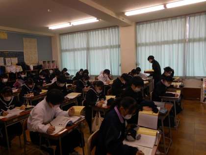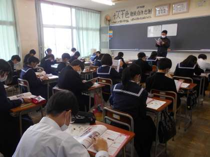 学年で作った「進路学習のしおり」を生徒に配布しました。