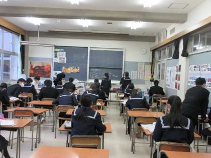 3年生の今日の授業の様子です。 写真上段 3−1 美術 写真下段 3−2 数学