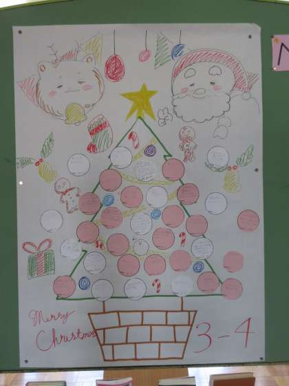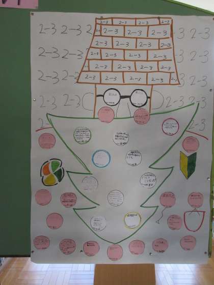 令和4年度 後期生徒会「玄関を明るくする運動」 第2弾 公開日 2022/12/18 更新日 2022/12/19 生徒会 後期生徒会「玄関を明るくする運動」第2弾。 「クリスマス」をテーマに「生徒会レクリエーション」の感想を書いた用紙が、クリスマスツリーのイラストを描いた台紙に貼ってあります。 各クラスが工夫を凝らして掲示物を制作しました。 クリスマスの雰囲気が漂っています。