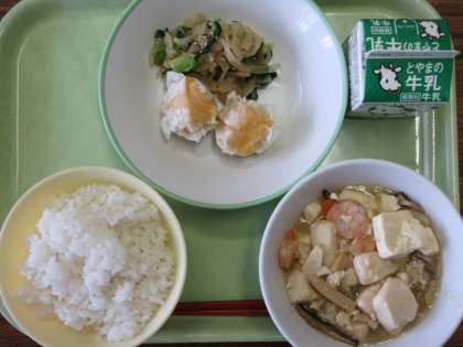 12月19日(月) 今日の給食 公開日 2022/12/19 更新日 2022/12/19 news 今日の給食のメニューは以下のとおりです。 ○ごはん ○牛乳 ○にんじんシューマイ ○大根ナムル ○えびと豆腐のうま煮 「えびと豆腐のうま煮」のあんが、トロリと具に絡んでおいしかったです。