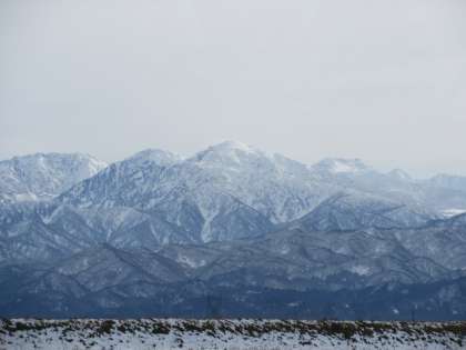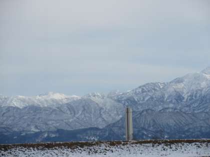 午前中、バナナ廊下(教室棟と体育館を結ぶ渡り廊下)では、立山連峰が太陽の日を浴びてきれいに映し出されていました。