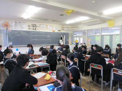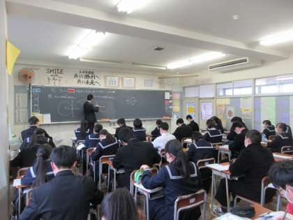 3年生の今日の授業の様子です。 写真上段 3−1 数学 写真下段 3−2 英語