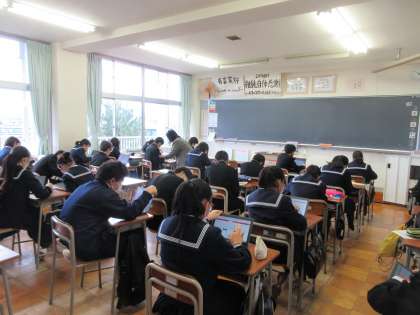 どちらのクラスもクロムブックを使ってで2学期の振り返りを行っていました。