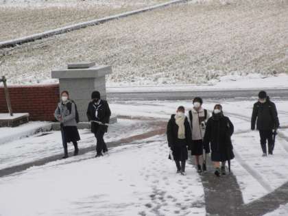 12月23日(金) 登校風景 公開日 2022/12/23 更新日 2022/12/23 news 今日の登校風景です。 天気予報では大雪が予想されていましたが、多少の積雪はありましたが、問題なく登校することができました。 今日は、2学期終業式です。 終業式後、学年集会、学活を行い下校となります。