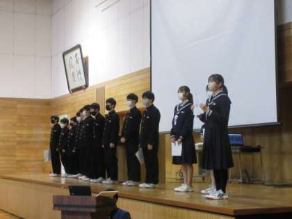 富山市中学校新人大会等の運動部の活動から、茶道部、美術部等の文化部の活動、また、個人で取り組んできた様々な活動の結果が報告されました。