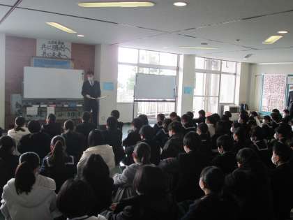 12月23日(金) 3学年集会 公開日 2022/12/23 更新日 2022/12/23 3学年 3年生は終業式の後、コモンスペースで学年集会を行いました。「主体性を大切にしよう」「受検当日にもっていく「バイブル」を決めておこう」「学習時間は大事だが、家族との時間も大事にしよう」など、たくさん大切な話がありました。冬休み、有意義に時間を使いましょう!