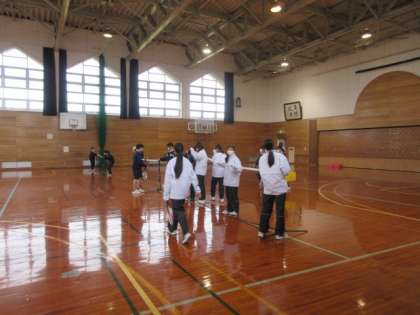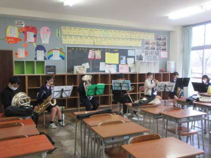 冷え込んだ中ですが、体育館や外では各部活動を行っています。また、吹奏楽部は各教室に分かれアンサンブルコンテストに向け練習を行っています。