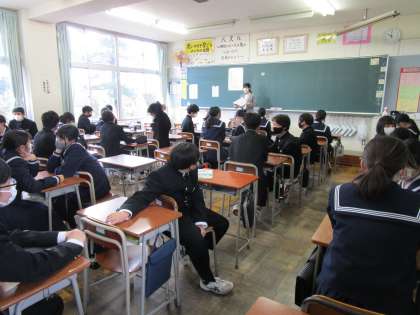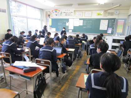 3学期初日の本日、1年生は始業式後、学活で冬休みの課題を回収したり、3学期の目標について話合ったりしました。