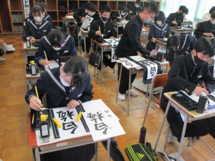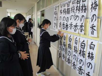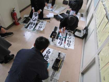 2年生の「白梅の香」筆運びは難しく、一画ずつ緊張しながら書いていました。