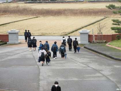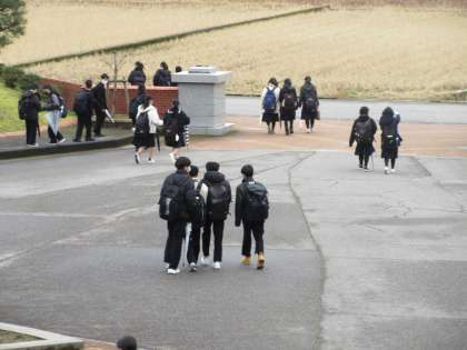 下校時には、天気予報どおり青空も顔を出して、生徒たちに活力を与えてくれていました。