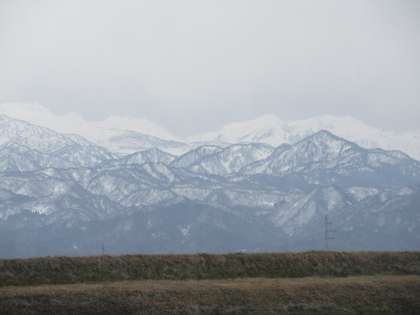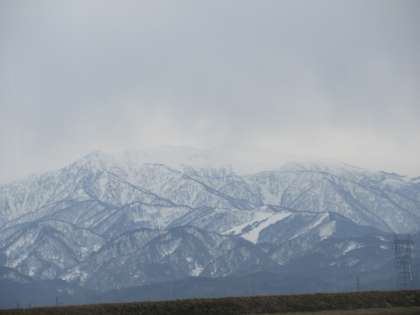 写真下段 スキー場の左横に尖った山があるのは「鍬崎山」