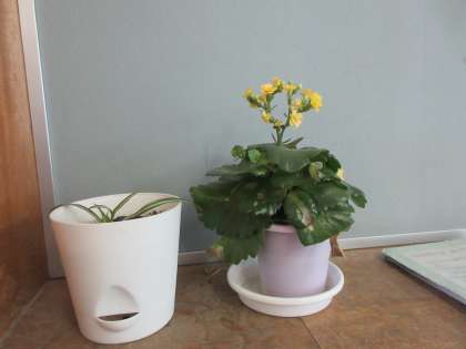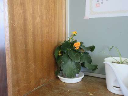 2年生の教室には、花鉢が置かれていて、寒い中でも細々と生活をしています。 温かくなる春までガンバレ!
