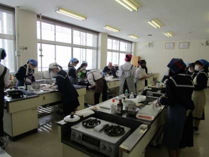1月25日(水) 1年 授業風景(2組 家庭科調理実習)