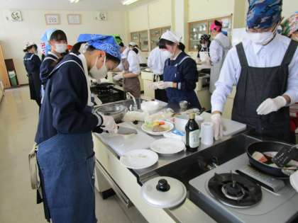 普段は料理をしない生徒も、グループの人と協力しながら一生懸命取り組んでいました。