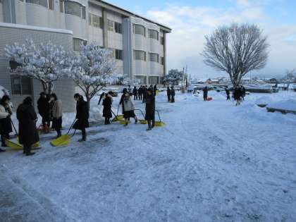 1月26日(木) 登校風景 除雪当番 公開日 2023/01/26 更新日 2023/01/26 news 今日は、早朝から陸上競技部のメンバーが前庭の除雪をしてくれました。 「みんなが登校するまでにキレイに除雪しよう!」と言って頑張っていました。 その後、本日の除雪当番の1年生も共に除雪活動を行いました。