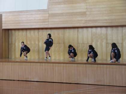 1月31日(火) 2年4組 ダンス発表会 公開日 2023/01/31 更新日 2023/01/31 2学年 本日、2学年の保健体育の授業では、これまでグループごとに練習してきたダンス発表会を体育館ステージの上で行いました。 ステージ上で、みんなの前で踊ることが恥ずかしがっている生徒もいましたが、頑張って踊っていました。