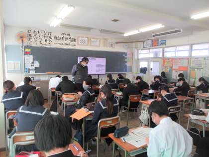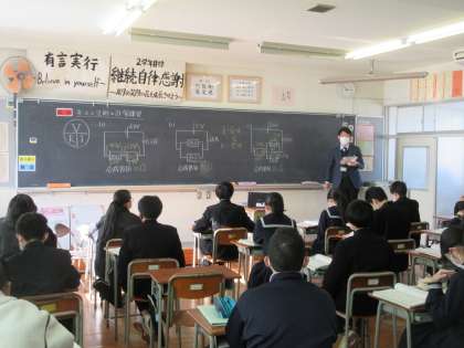 2年生の今日の授業の様子です。 写真上段 2−1 理科 写真下段 2−3 数学