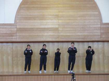 1月31日(火) 2年3組 ダンス発表会 公開日 2023/01/31 更新日 2023/01/31 2学年 本日3限、2年3組が保健体育の授業でダンス発表会を行いました。 グループで様々な工夫を凝らし、まとまりを感じました。