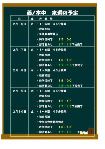 2月6日(月)からの予定