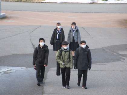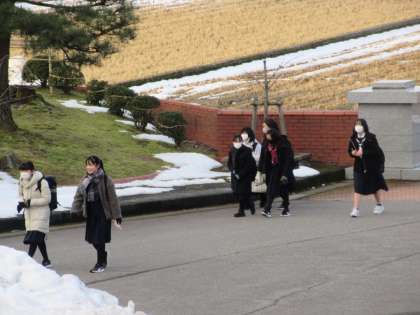2月7日(火) 登校風景 公開日 2023/02/07 更新日 2023/02/07 news 今朝の登校風景です。 早いもので、2月に入ってもう1週間が経ちます。 今朝も昨日に引き続き快晴の朝を迎えました。 生徒たちはスニーカーで登校するようになりました。 前庭に除雪で積み上げられた雪山も小さくなってきました。 今日も1日、みんなで“共に”頑張りましょう!