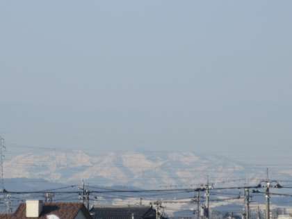 生徒が登校している時間帯の西側の山々の様子です。