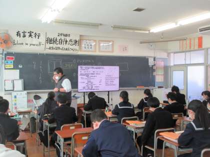 2年生の今日の授業の様子です。 写真上段 2−1 数学 写真中段 2−3 理科
